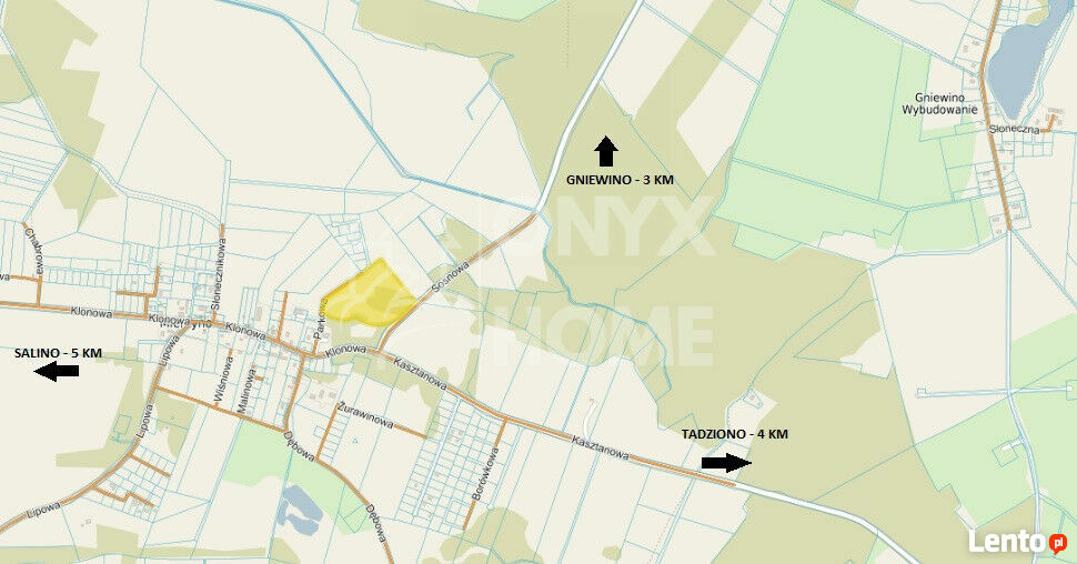 W niedalekiej odległości od działki znajdują się media: prąd, woda, kanalizacja. Bezpośredni dostęp do szosy łączącej Mierzyno i Gniewino (ul. Sosnowa) oraz do nieutwardzonej drogi (ul. Parkowa). Na terenie nieruchomości znajduje się rów melioracyjny, oddzielający w terenie tereny MN,U od rolniczych.